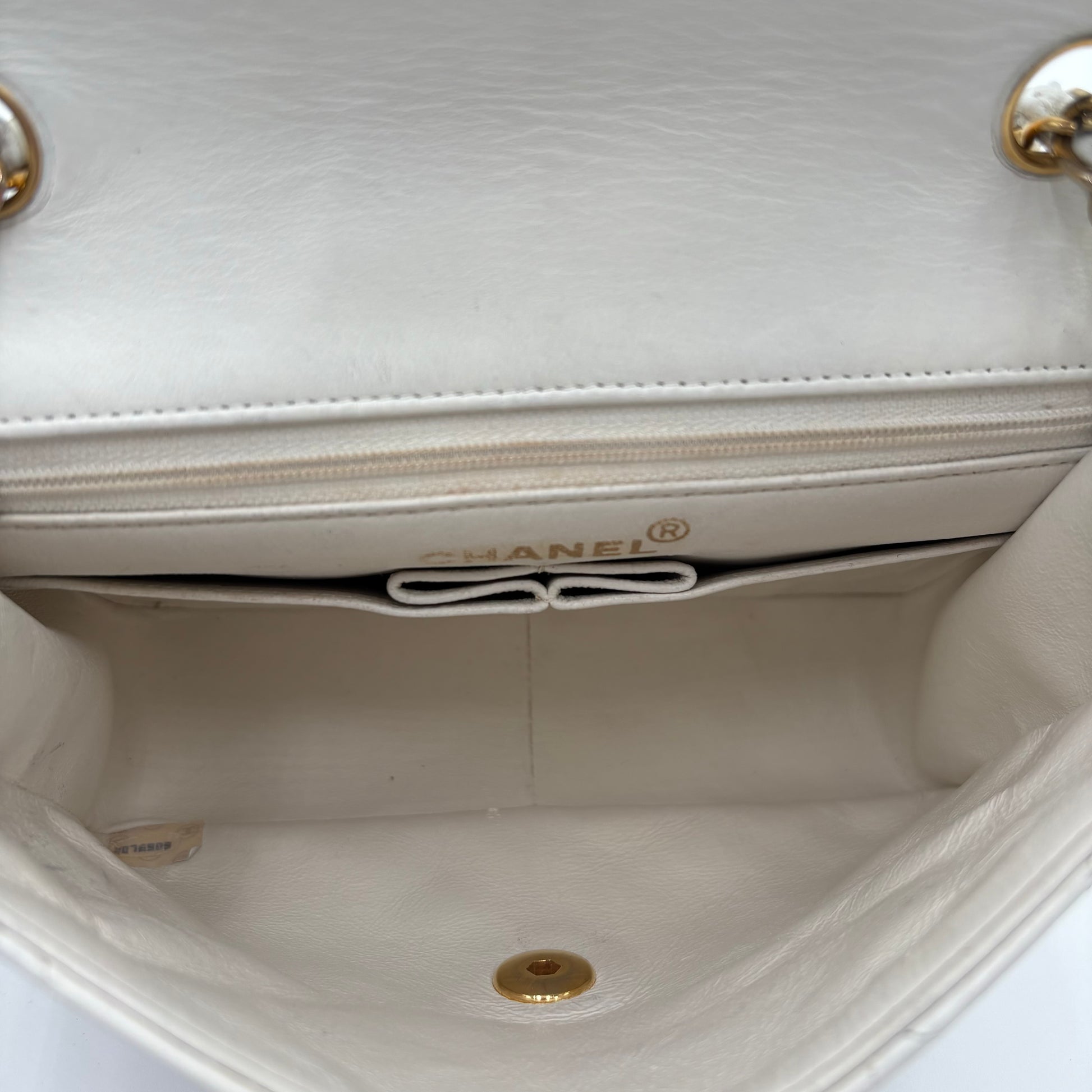 1991-94 Chanel Mini Single Flap White Lambskin Bag