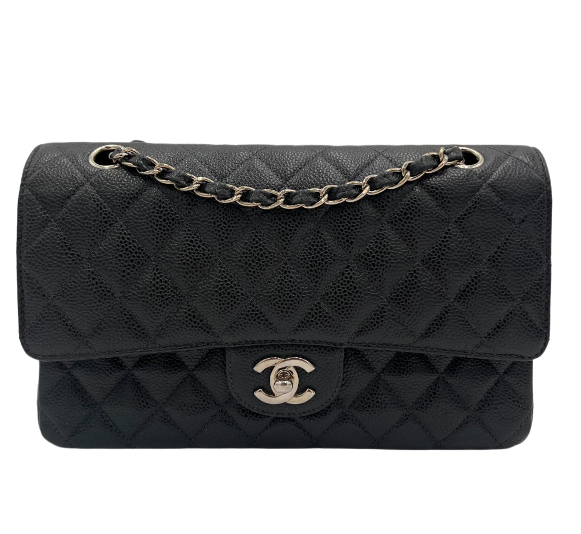 - Silver-tone hardware, and the iconic Chanel CC logo on the front.