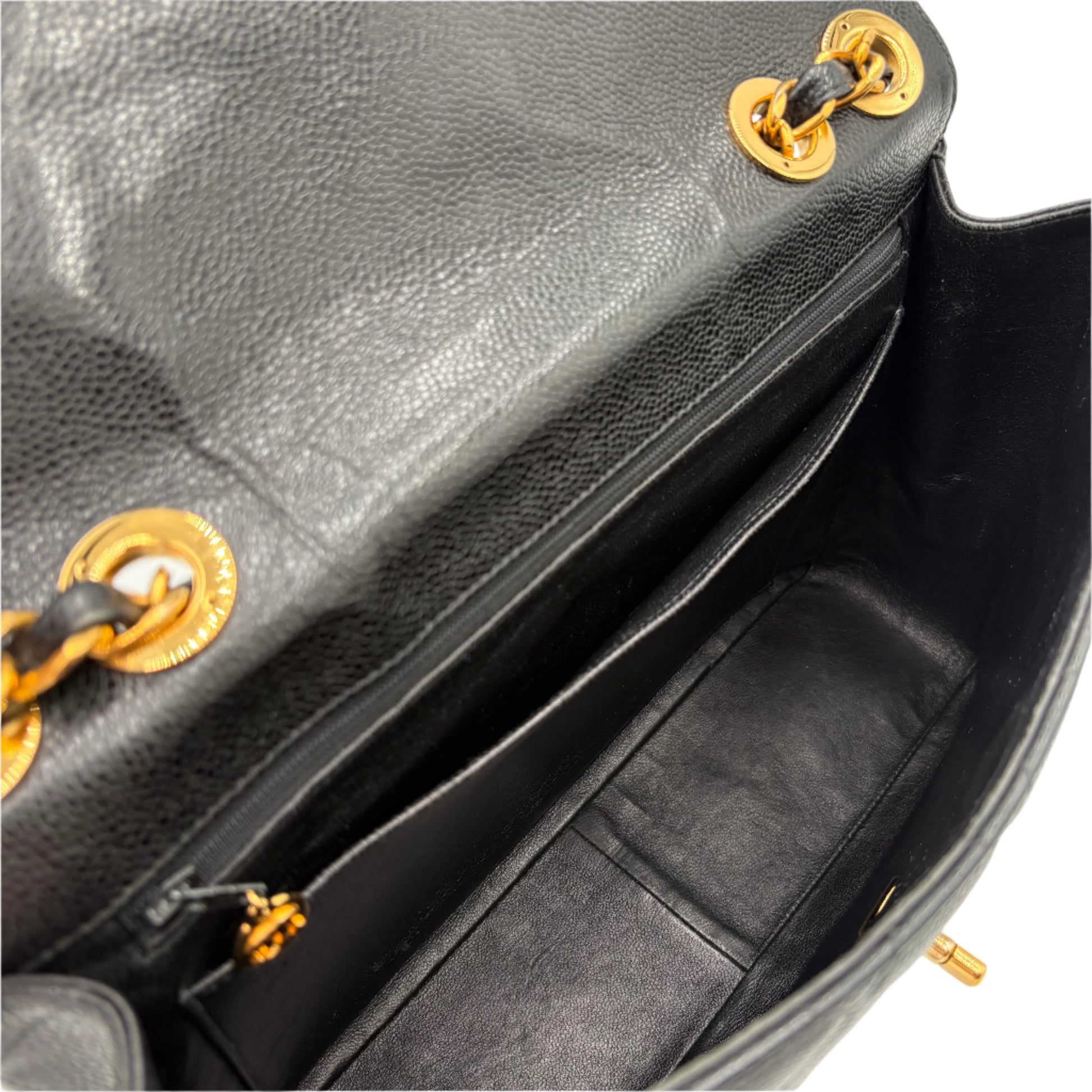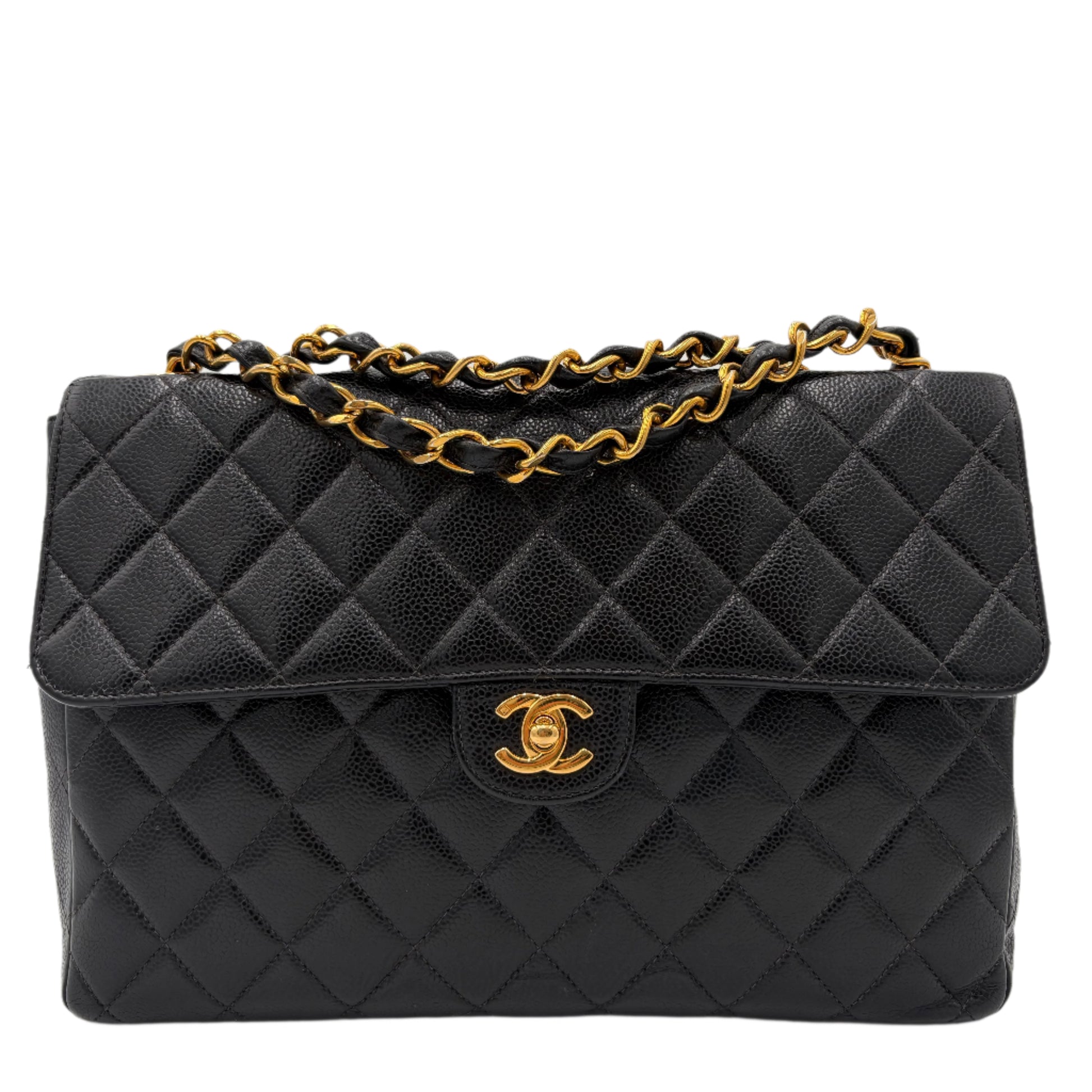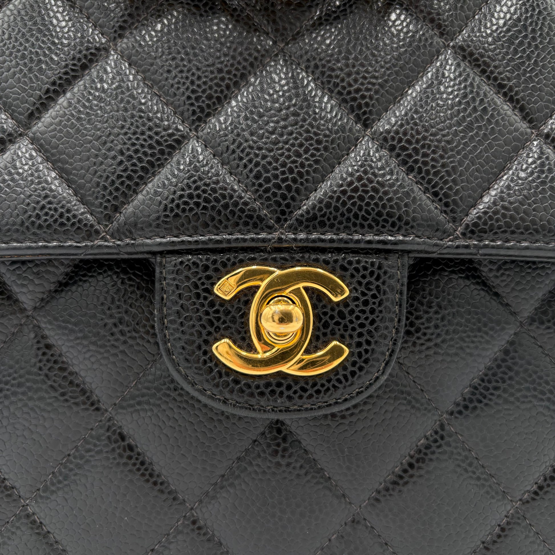 2002 Chanel Caviar Flap Bag-Black : Jumbo