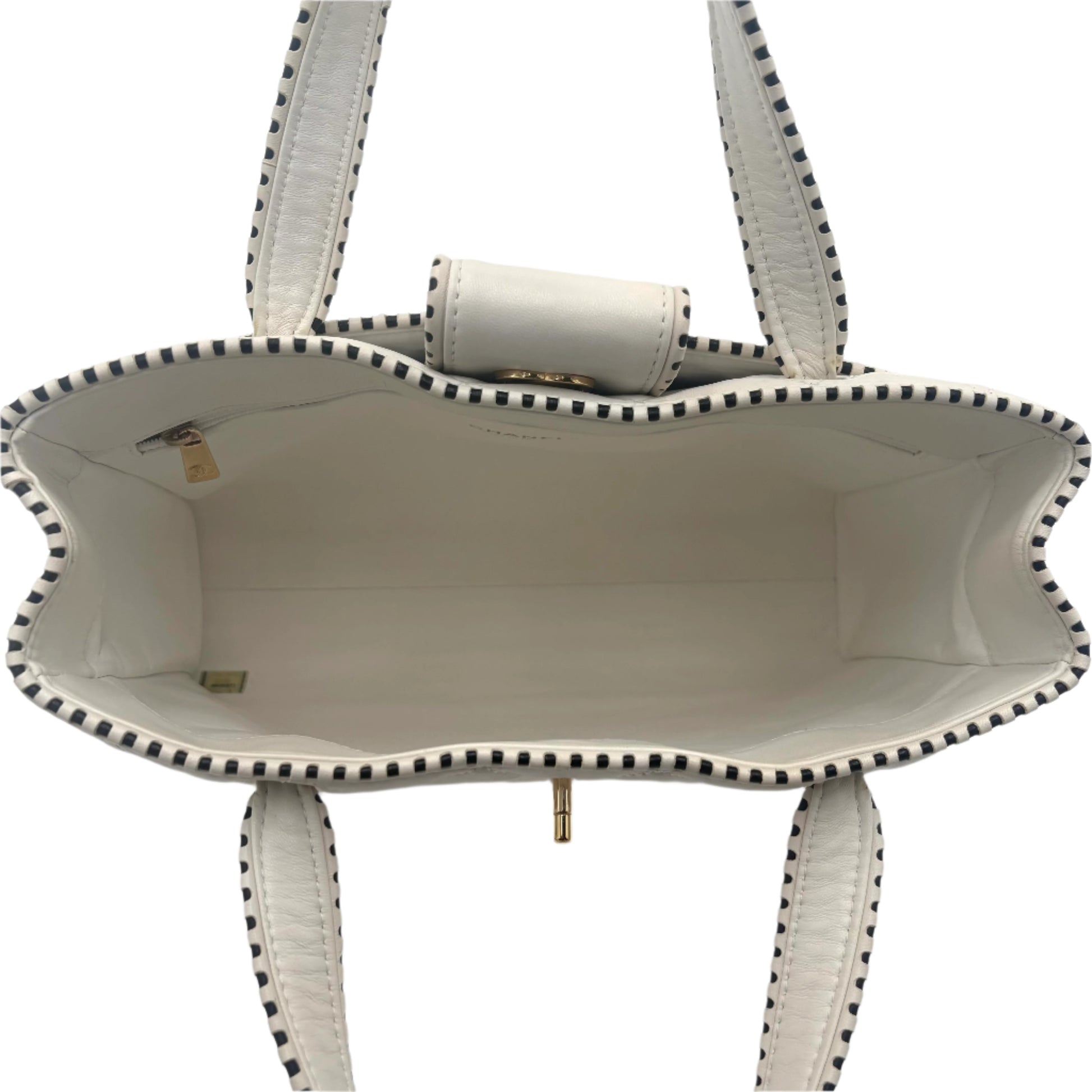 - Gold-tone hardware with iconic Chanel CC logo charm