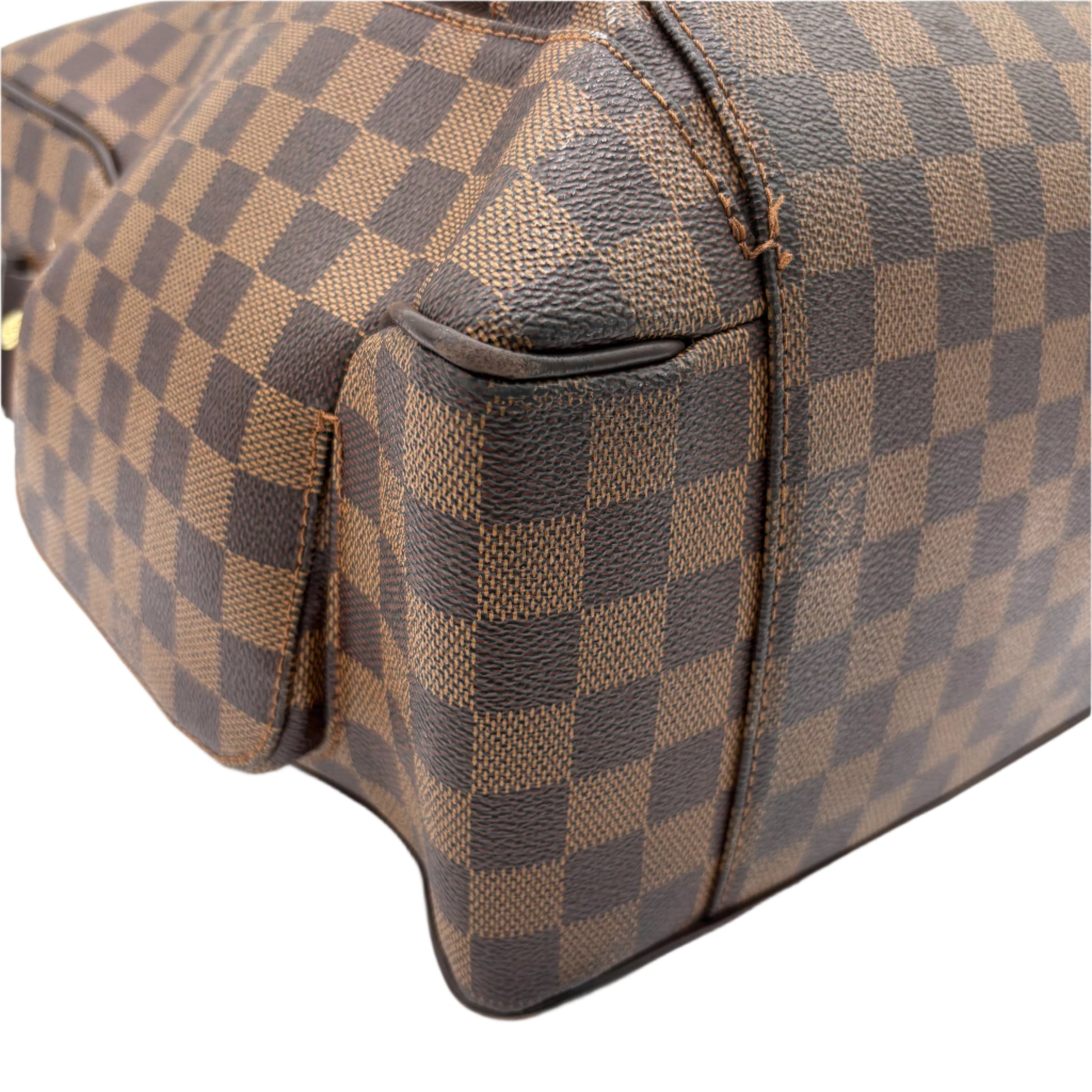 - Durable Damier Ebene coated canvas with leather trim