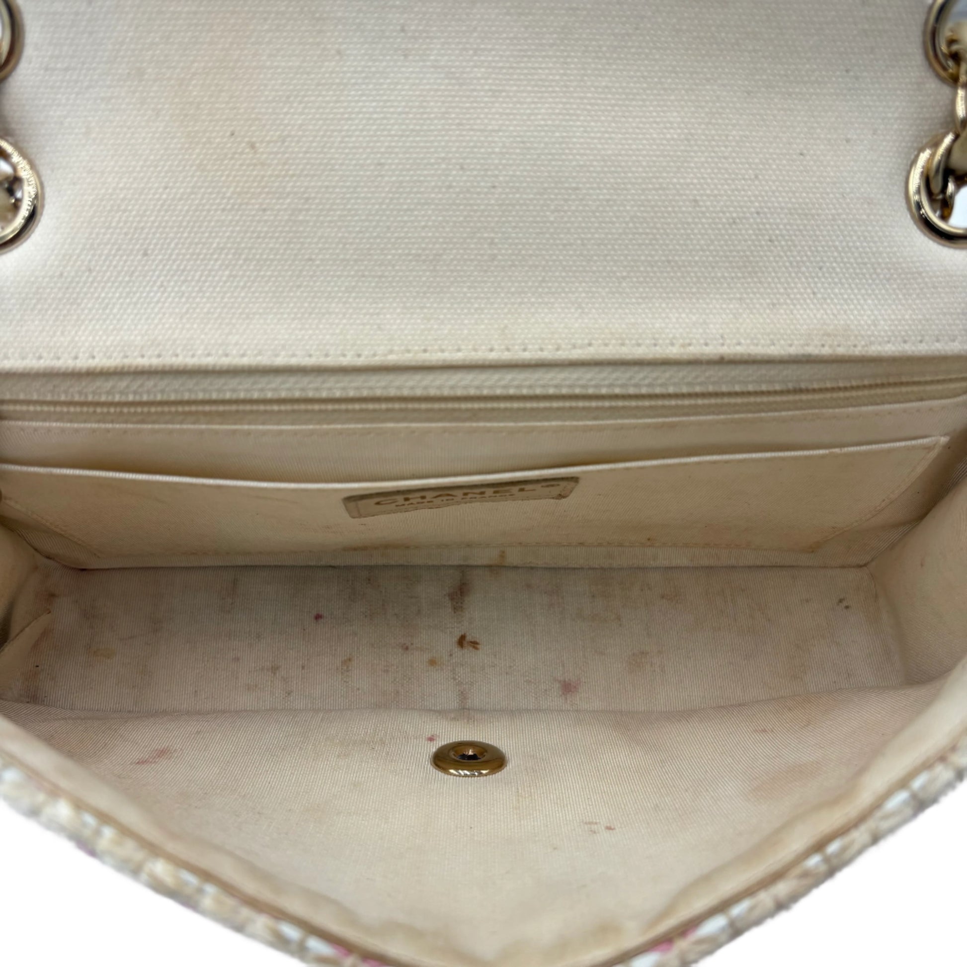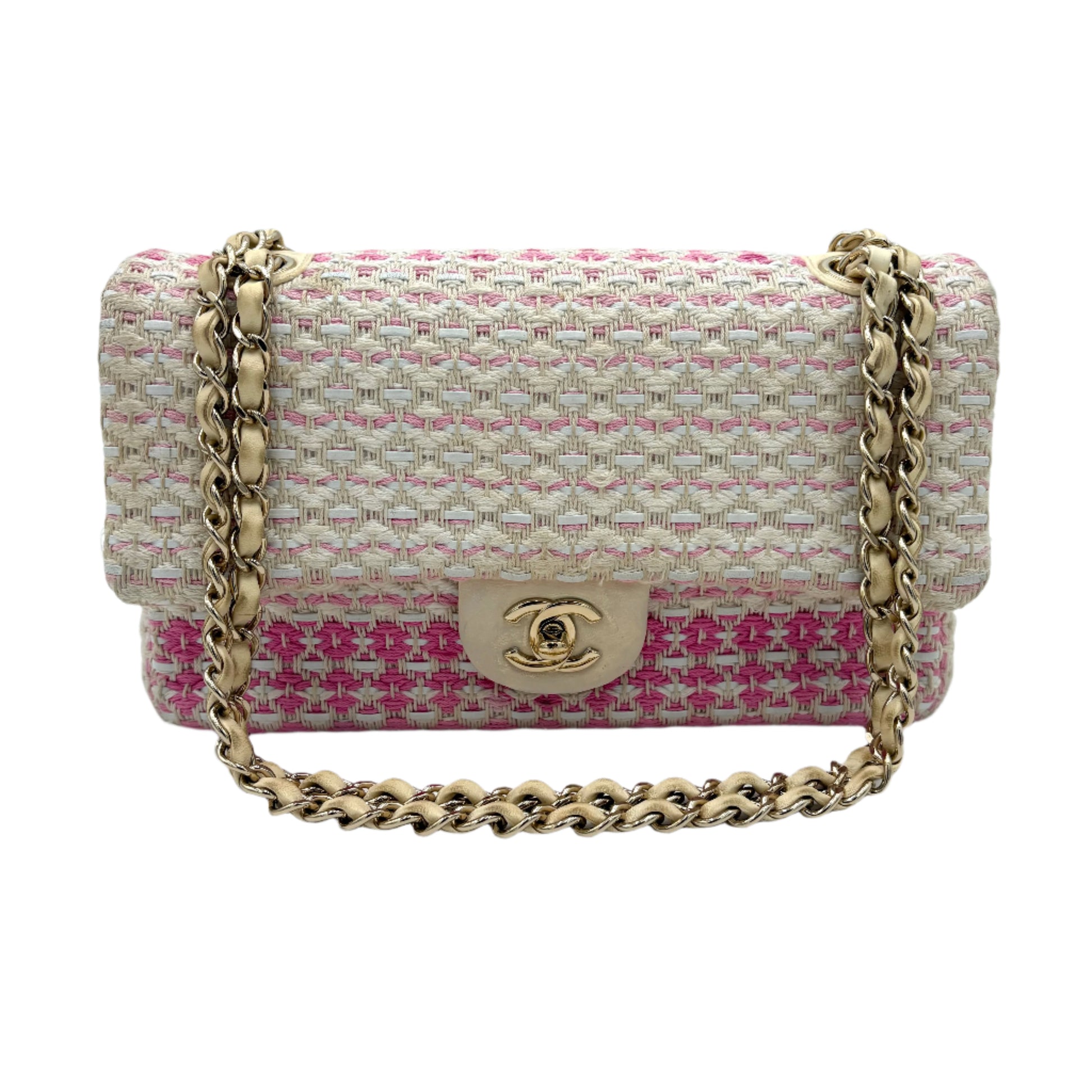 - Interlocking CC Logo, Quilted Pattern, Chain-Link Accent & Tweed Pattern