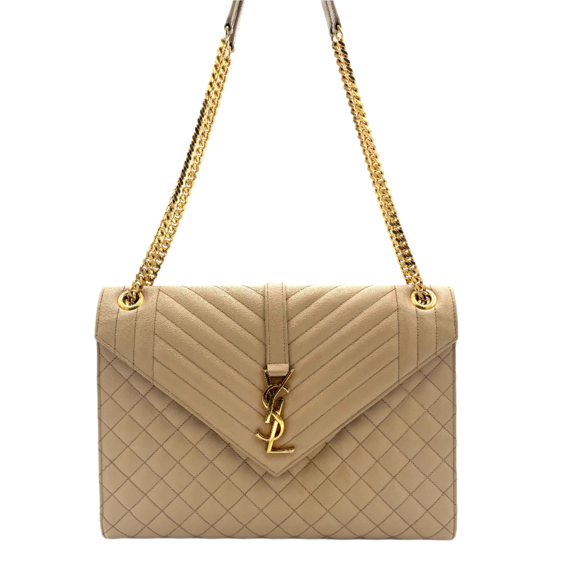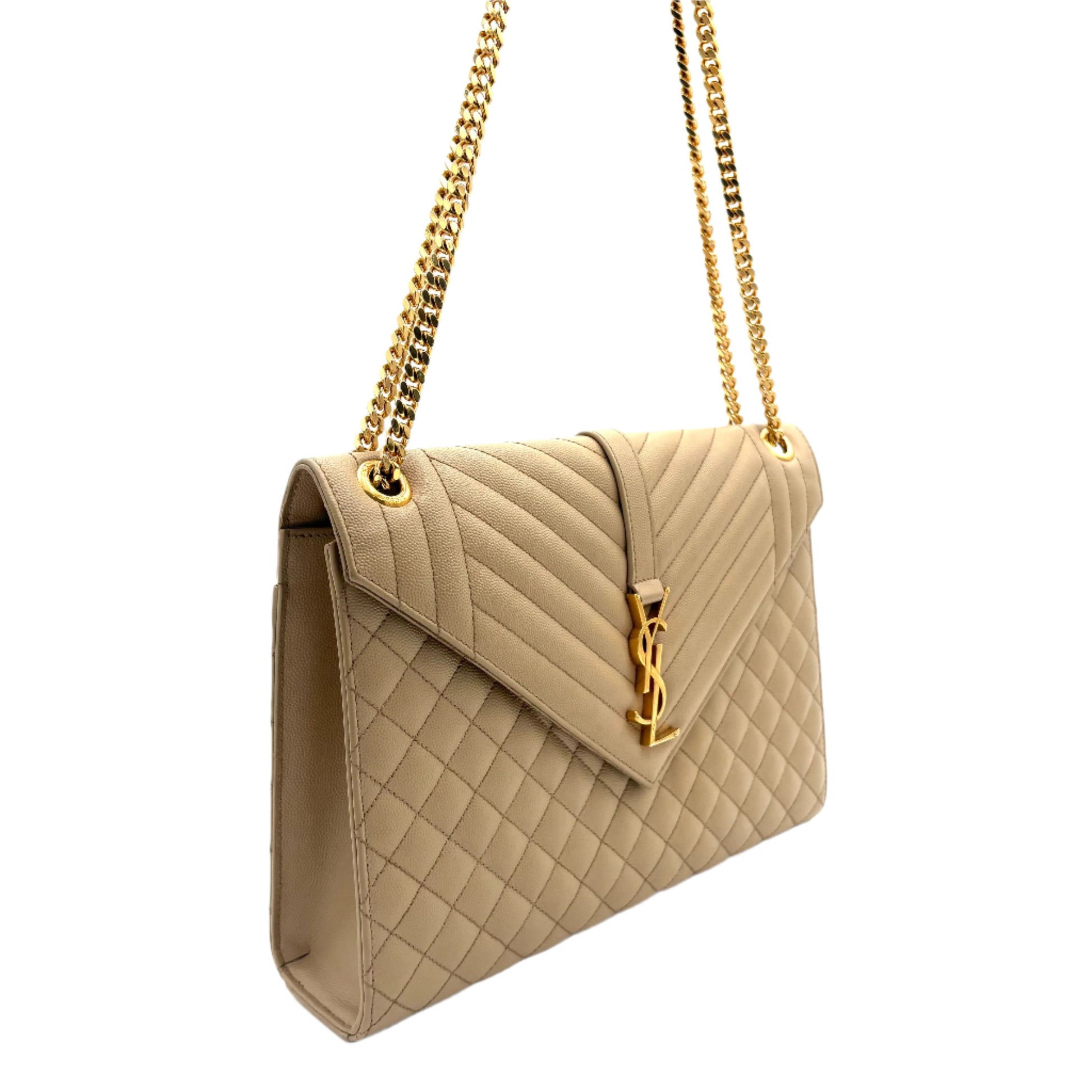 Saint Laurent Envelope Triquilt Large Shoulder Bag in Grained Leather