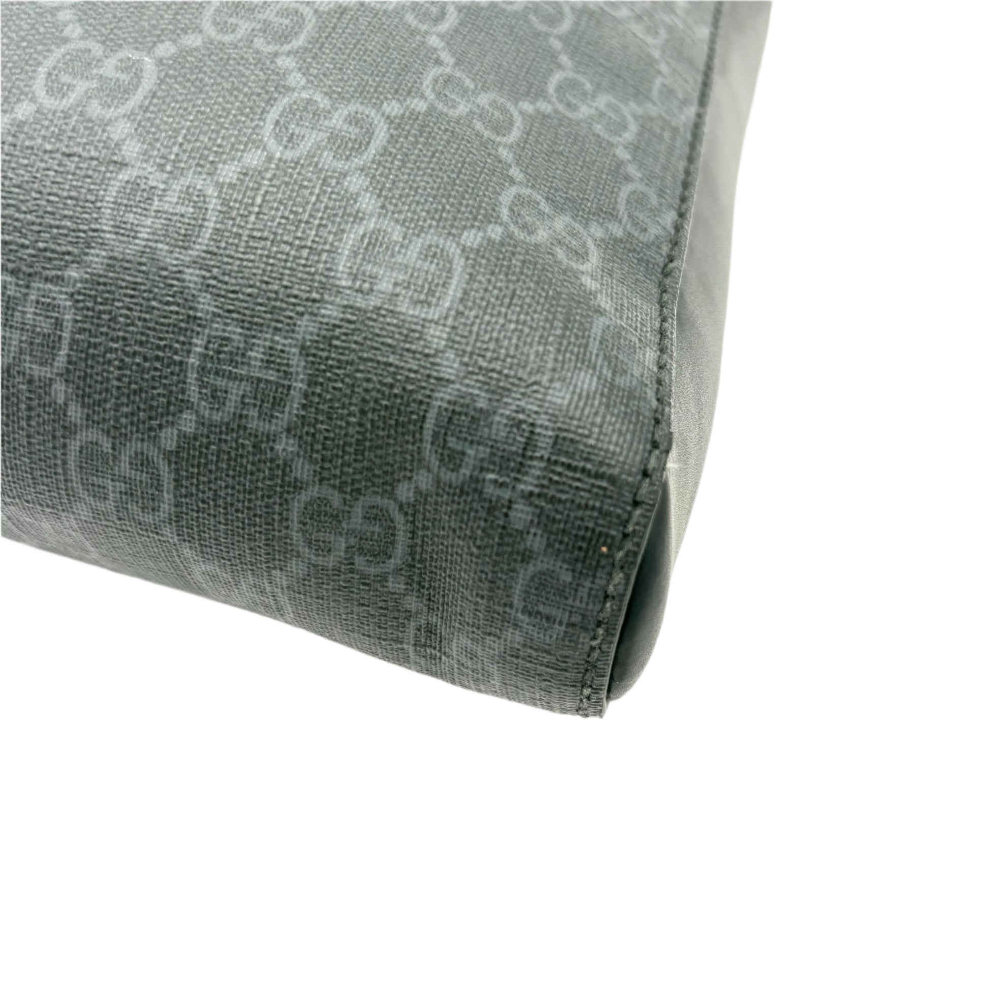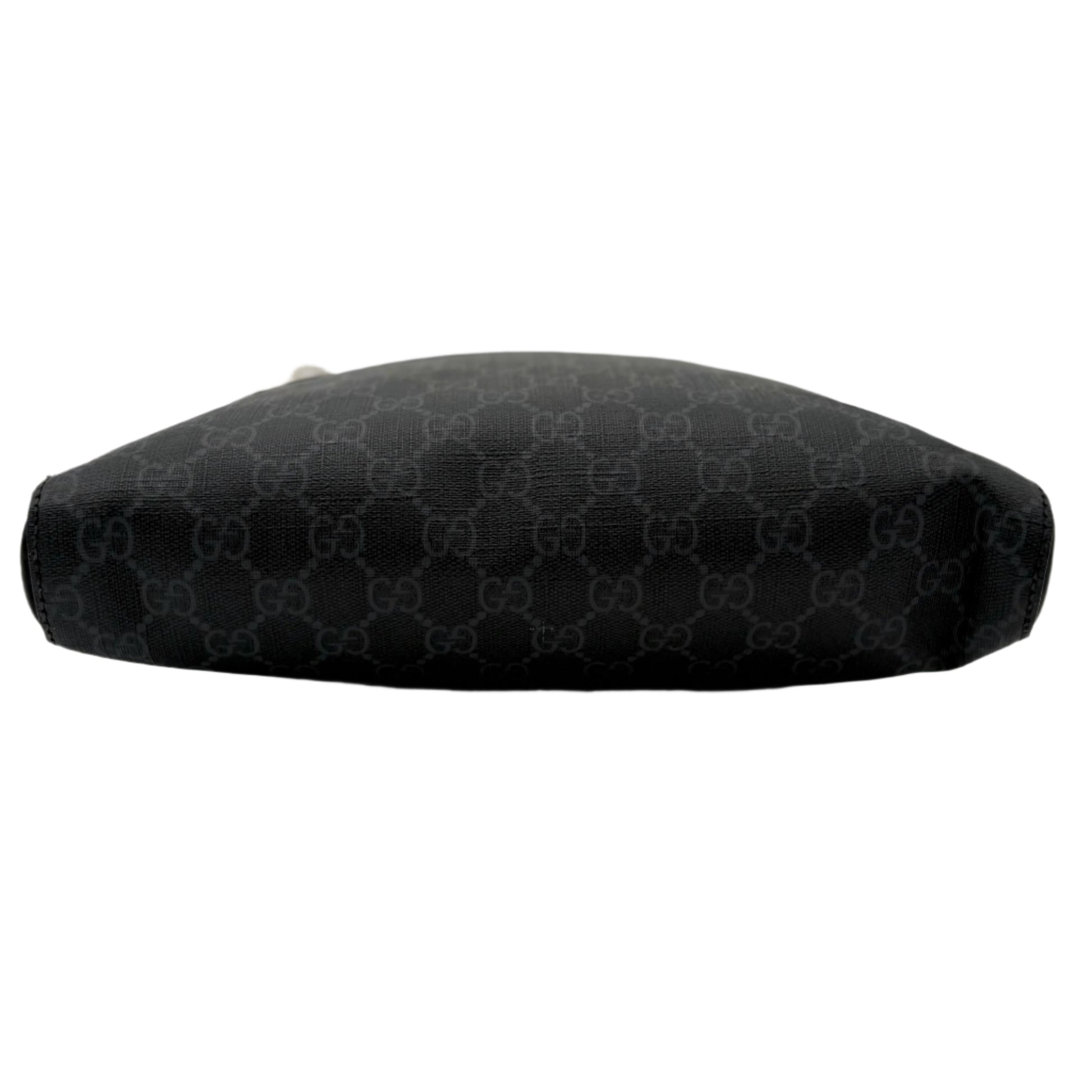 - GG Supreme coated canvas in black/grey, trimmed with black leather
