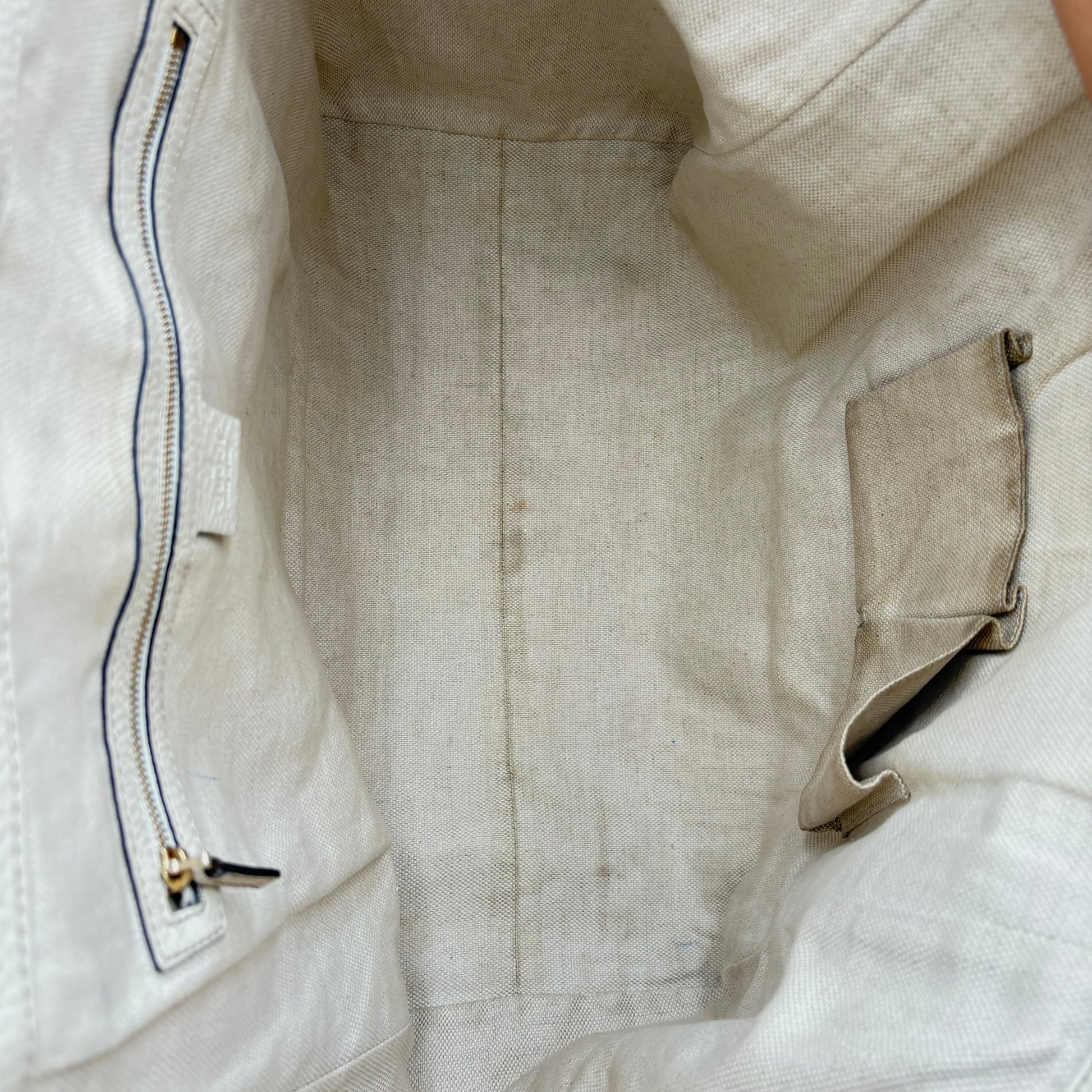 - Cotton-linen lining with one zip pocket and two open slip pockets