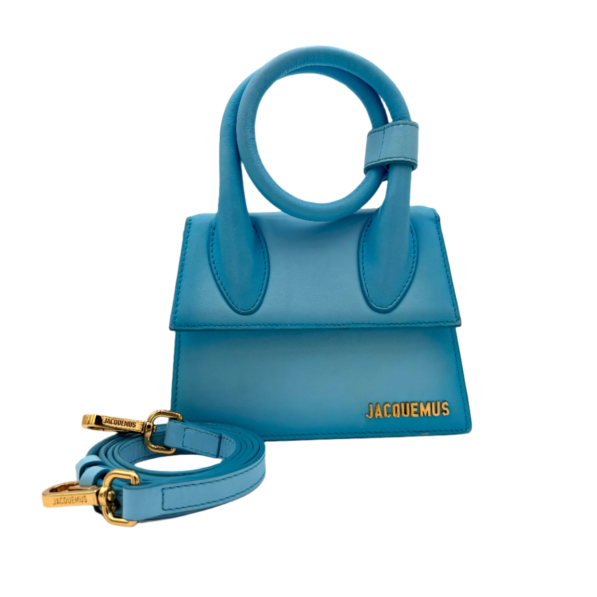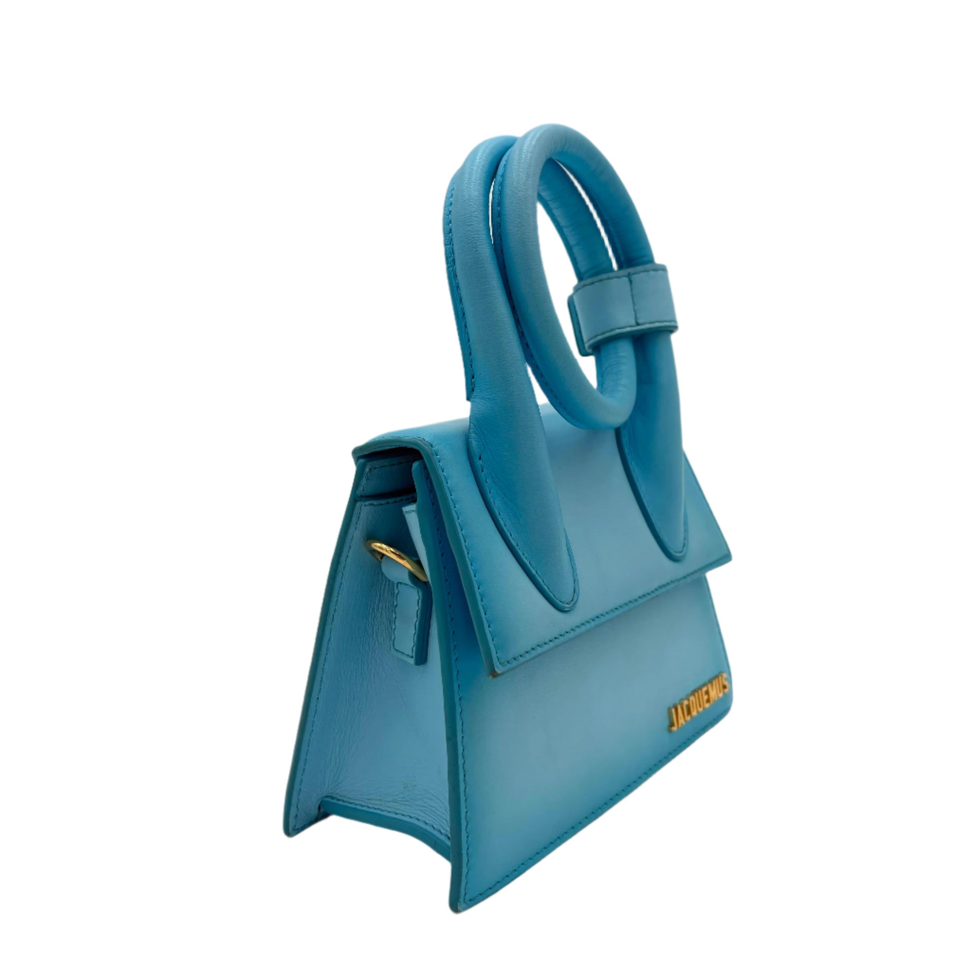 - Gold-tone Jacquemus logo on the exterior.