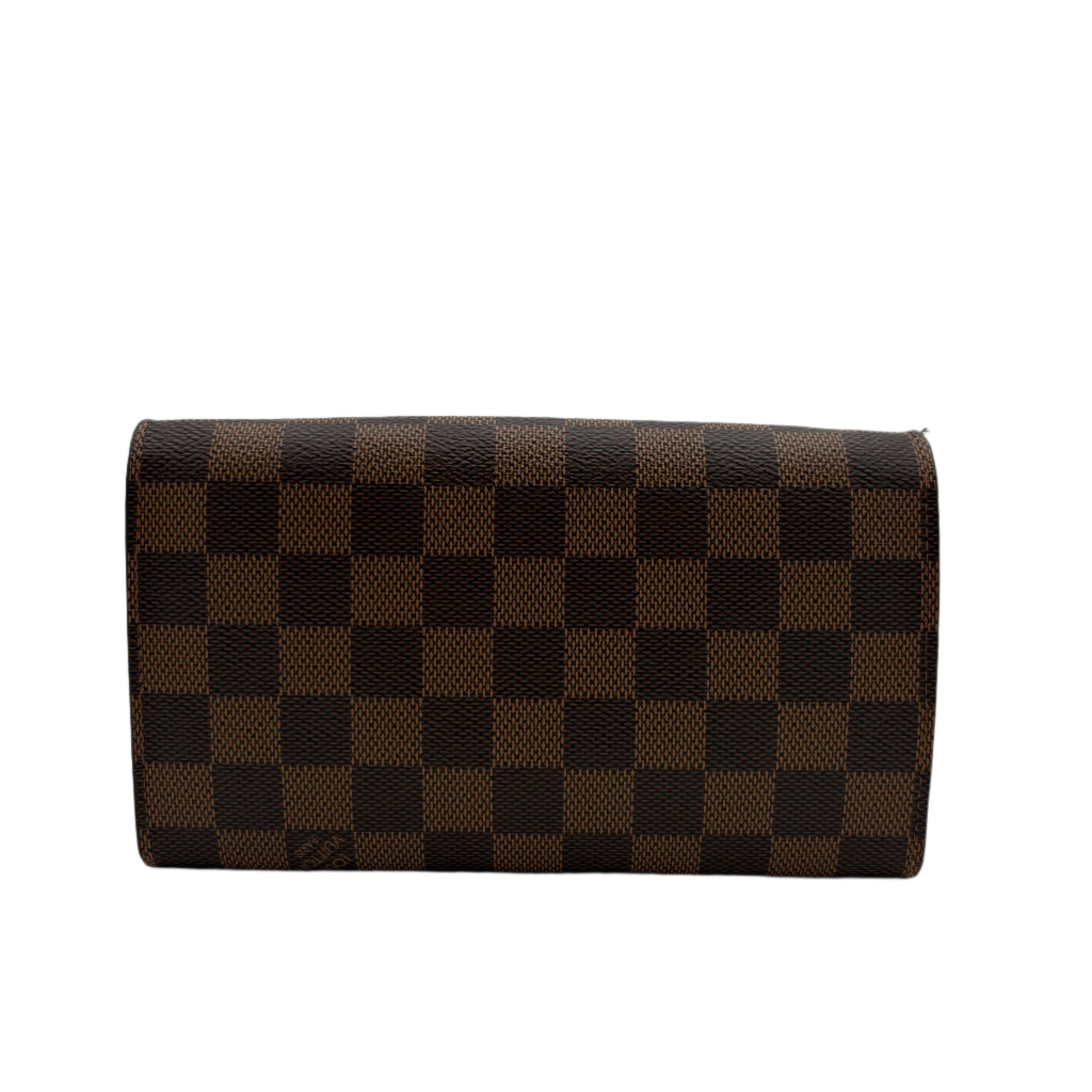 - Damier canvas with leather details.