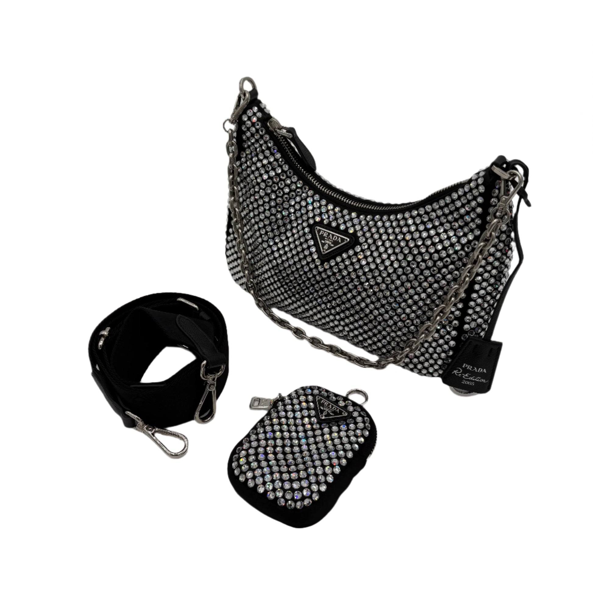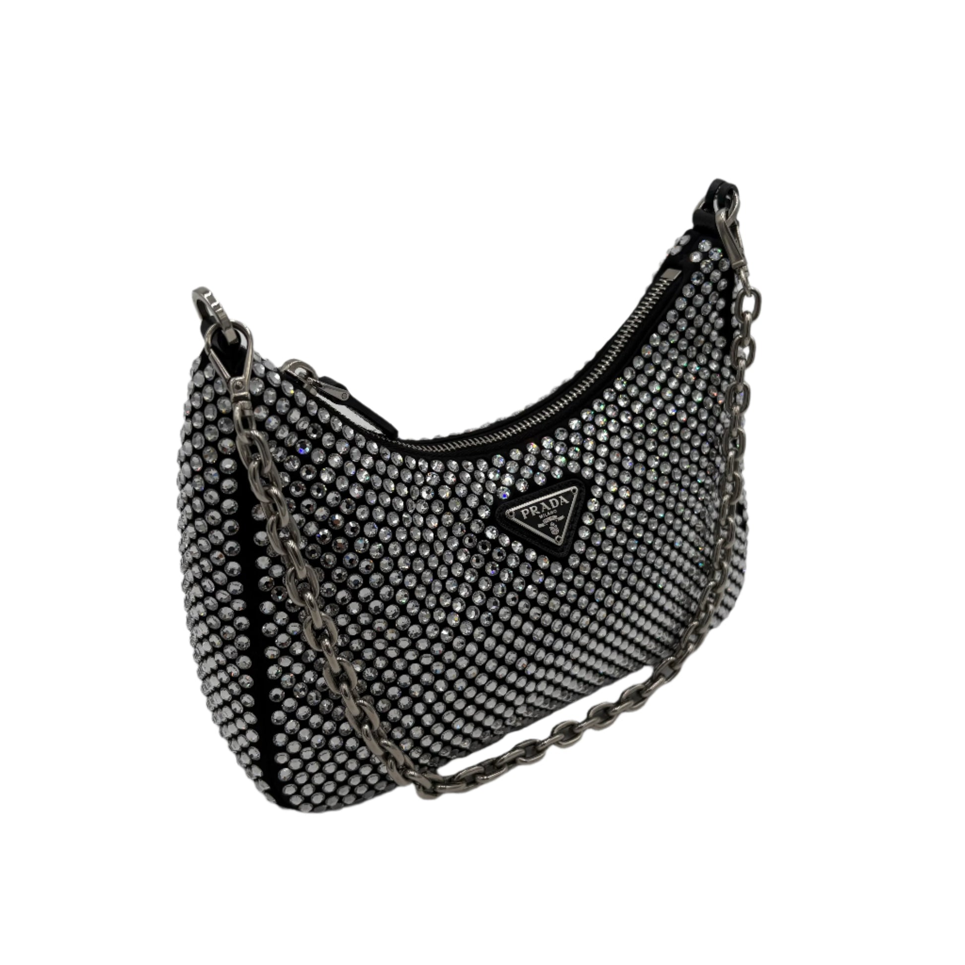 Prada Re-Edition 2005 Crystal Black Silk Crossbody