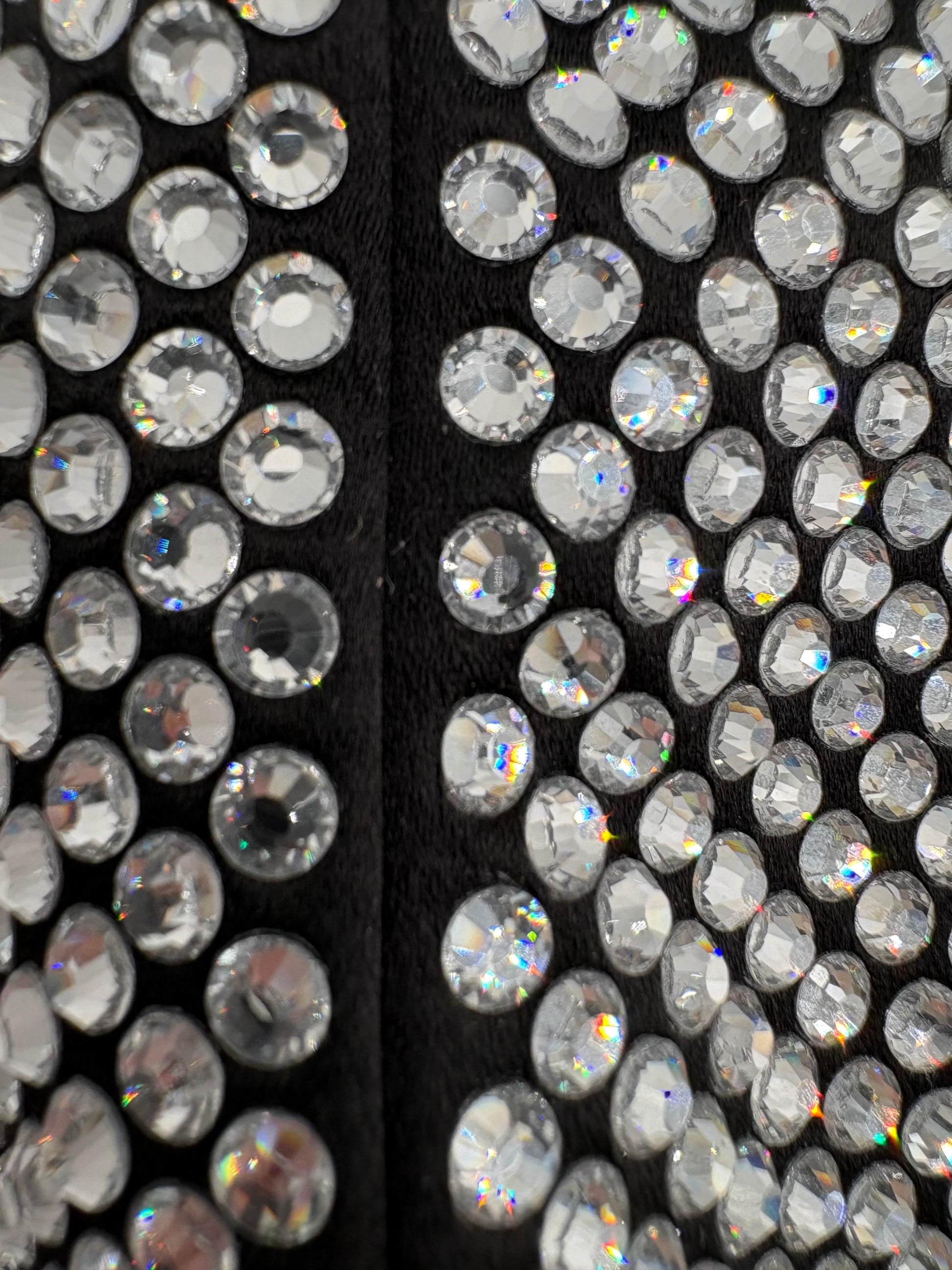 - Black silk fabric embellished with crystals