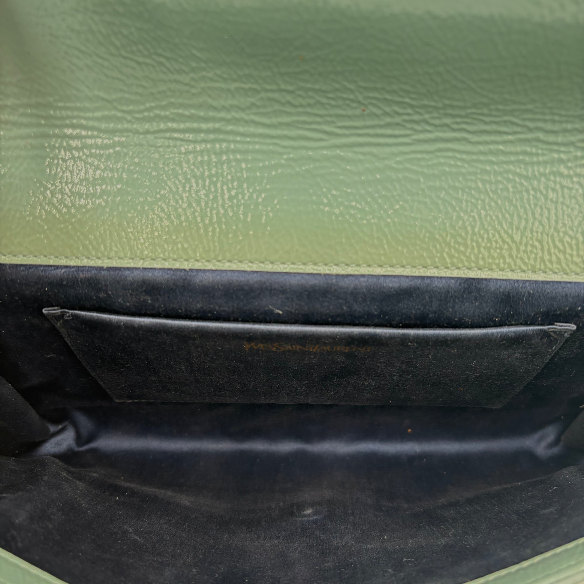 - Signature YSL logo stitched on the front flap for classic branding