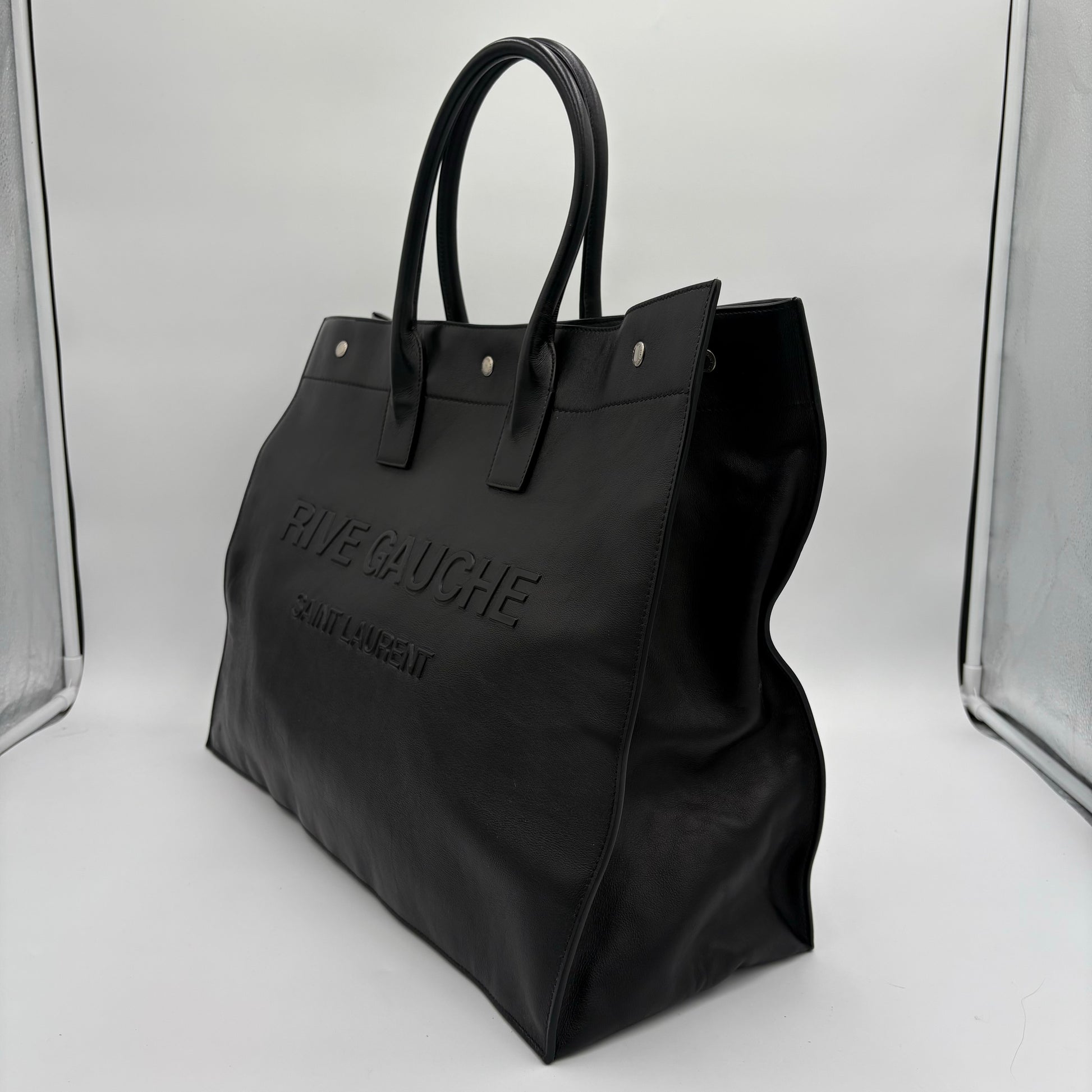 - Saint Laurent Noe YSL Rive Gauche Shopper Tote in luxurious all-black smooth leather