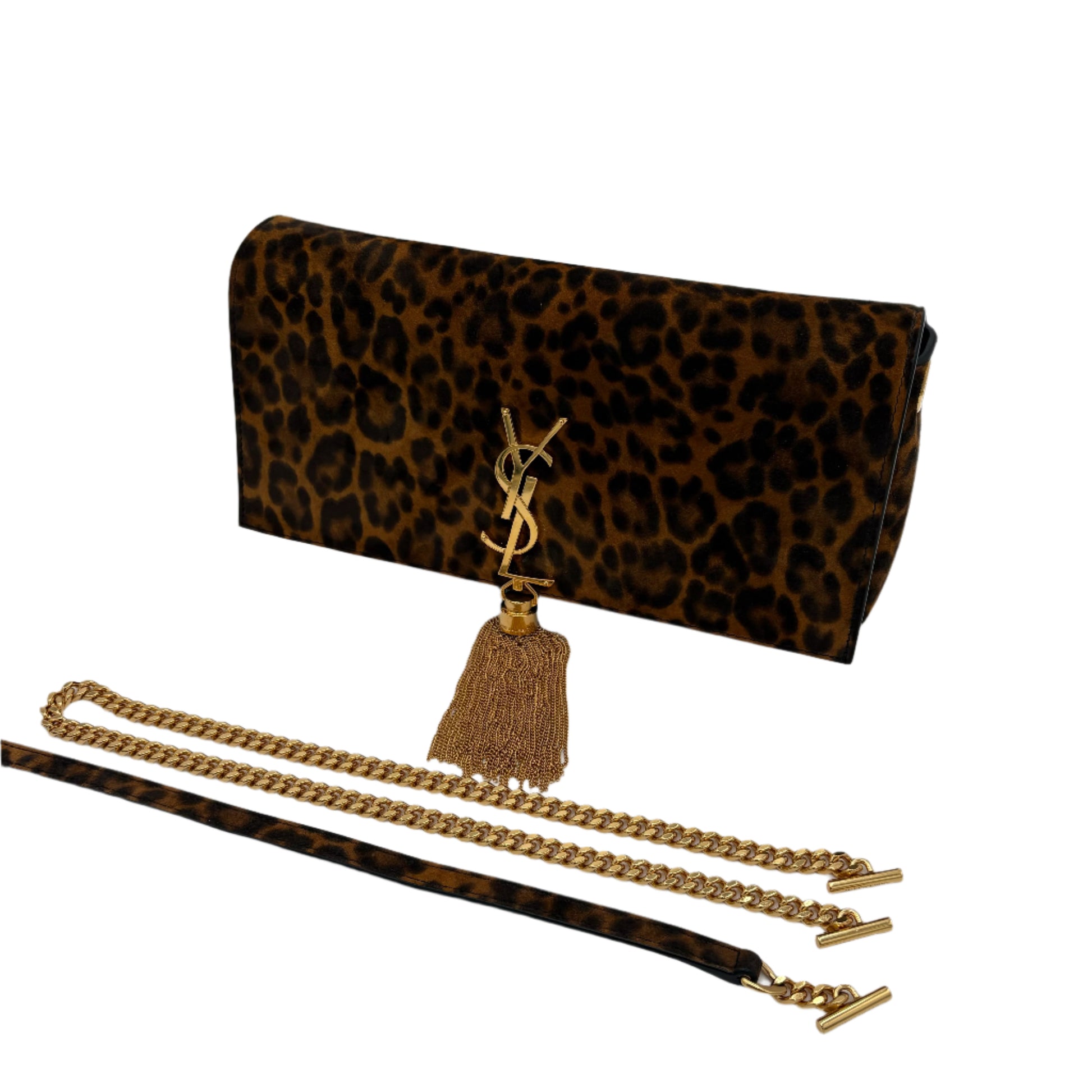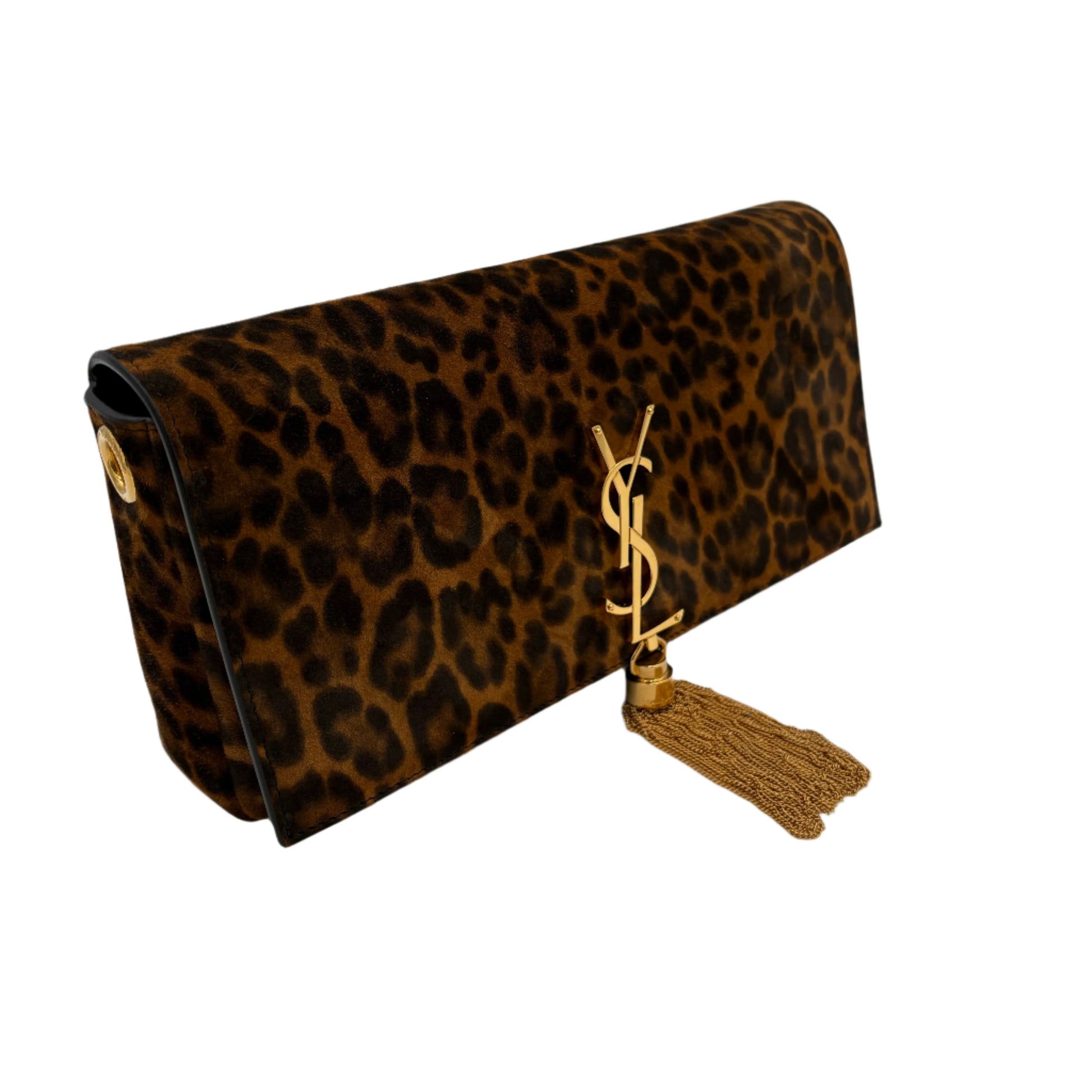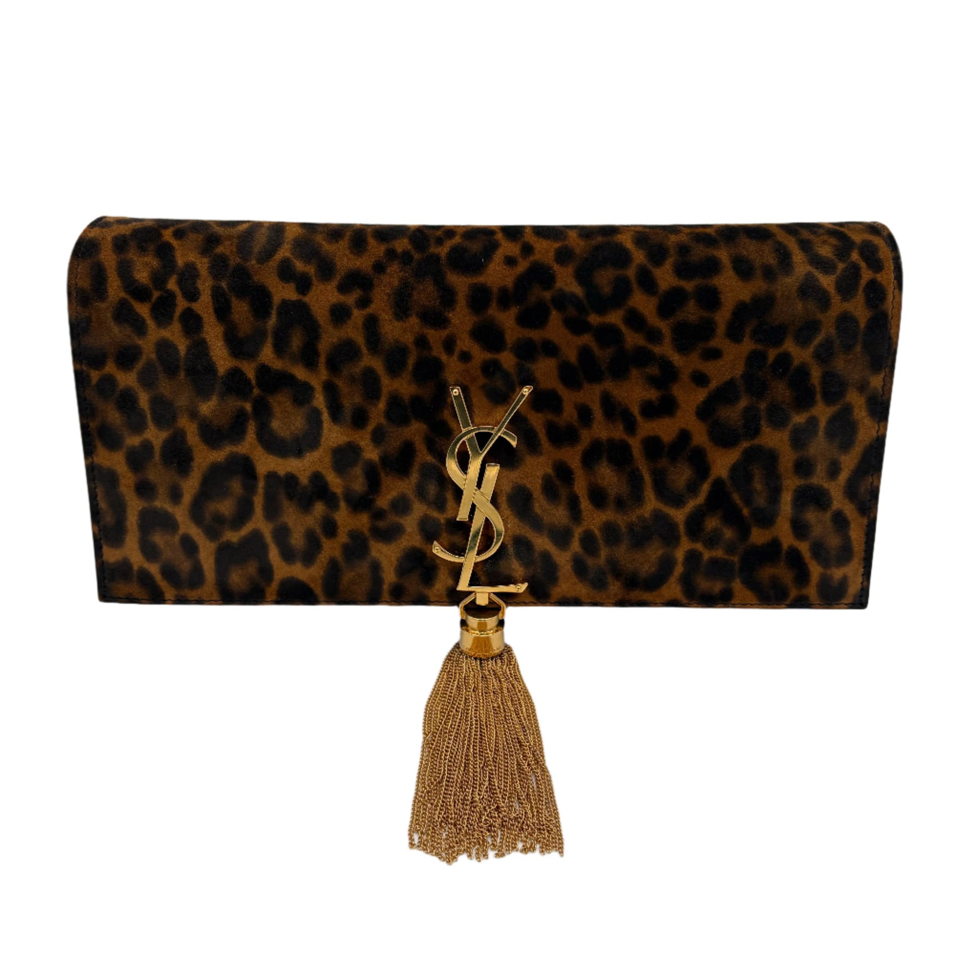 Saint Laurent Suede Leopard Print Monogram Tassel Kate 99